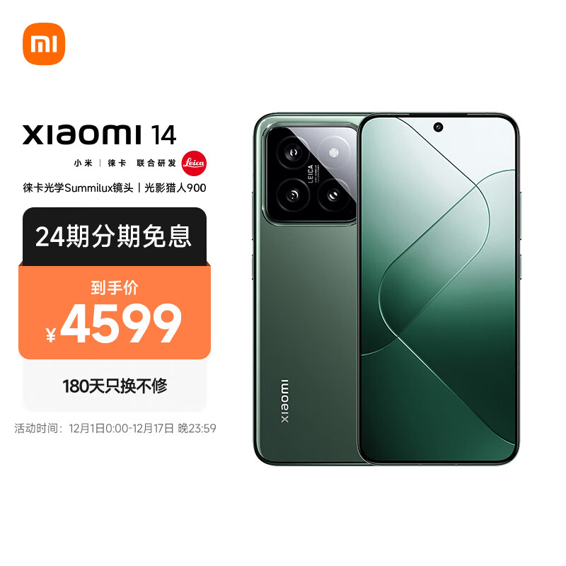 小米14 徕卡光学镜头 光影猎人900 徕卡75mm浮动长焦 骁龙8Gen3 16+512 岩石青 小米手机 红米手机 5G价格:4599.00元!