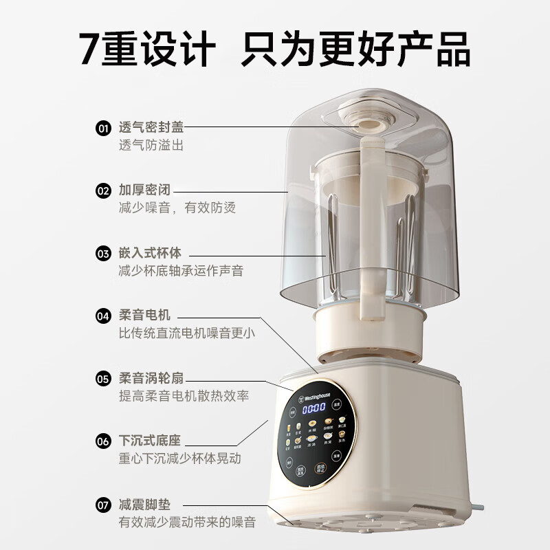 西屋(Westinghouse)柔音破壁机家用豆浆机加热全自动榨汁机搅拌机降噪辅食机 WPB15J8抹茶绿(单杯款)价格:439.00元!