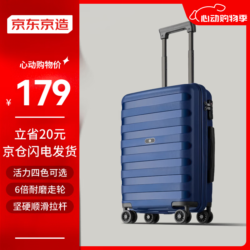 京东京造 飞行家行李箱男女拉杆箱20英寸 旅行箱登机箱密码箱学生 海蓝价格:199.00元!
