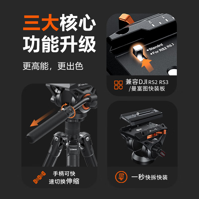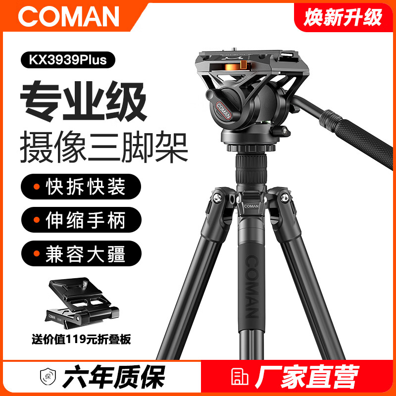科漫KX3939plus相机三脚架专业摄影摄像便携手机稳定支架自拍直播拍照录像户外独脚液压云台单反三角架价格:574.00元!