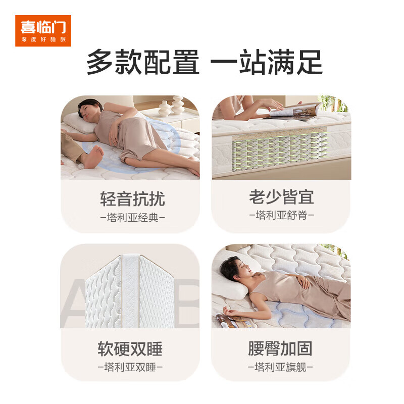 喜临门高纯乳胶 三区独袋弹簧床垫 3D黄麻床垫 塔利亚旗舰版 1.5x2米价格:1998.00元!