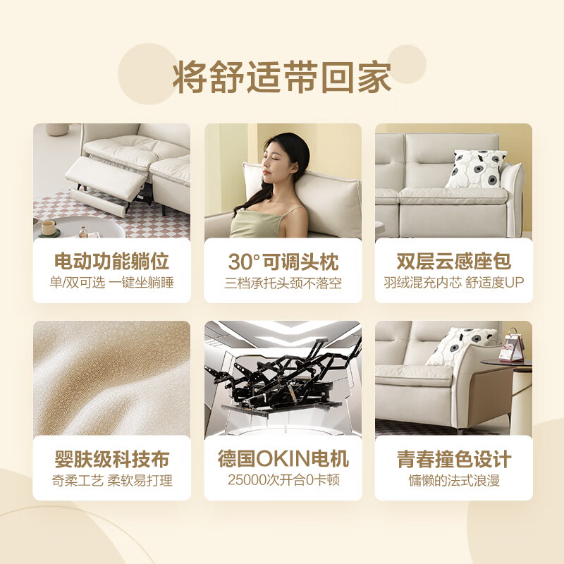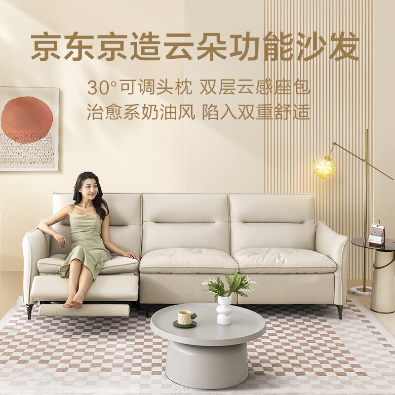 京东京造布艺沙发 奇柔科技布头枕可调双层座包 客厅大户型2.7m单电动SE14价格:3199.00元!
