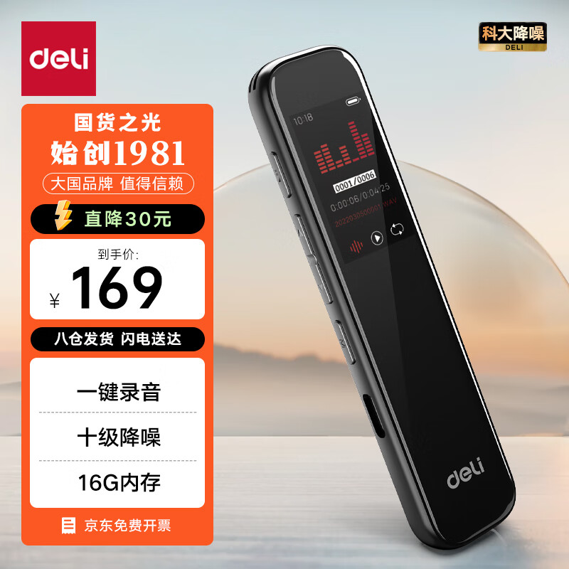 得力录音笔 录音神器 便携式随身 录音设备专业录音 超长待机 录音笔学习会议培训 16G 75611价格:169.00元!