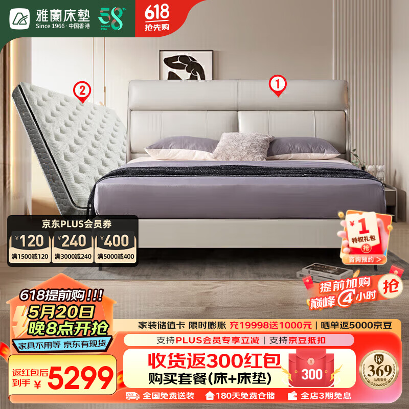 雅兰(AIRLAND)简约风皮床双人皮艺床 套餐 伯明翰+卓跃总统版 1.8*2米价格:6599.00元!