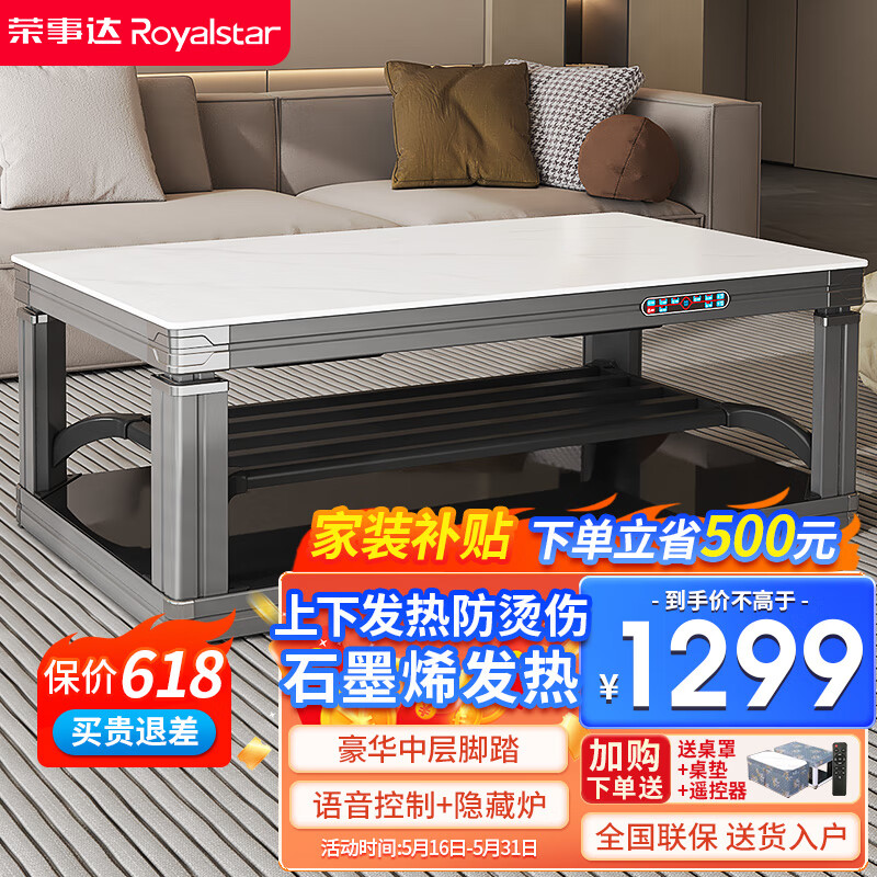 荣事达电暖桌1.2米石墨烯发热烤火茶几带语音控制升降取暖器家用电暖炉取暖桌长方形餐桌烤火桌RC-C2价格:1799.00元!
