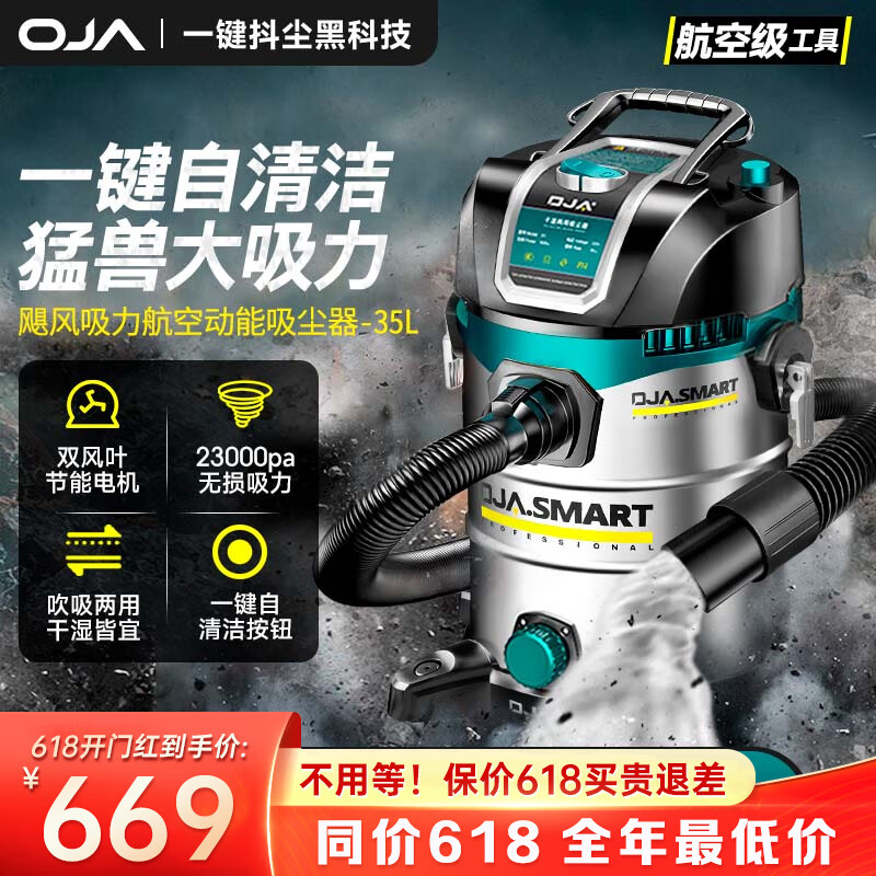 OJA【自清洁抖尘】桶式吸尘器工业家用干湿吹1600W大功率商用大吸力装修美缝开荒保洁工厂车间办公室价格:669.00元!