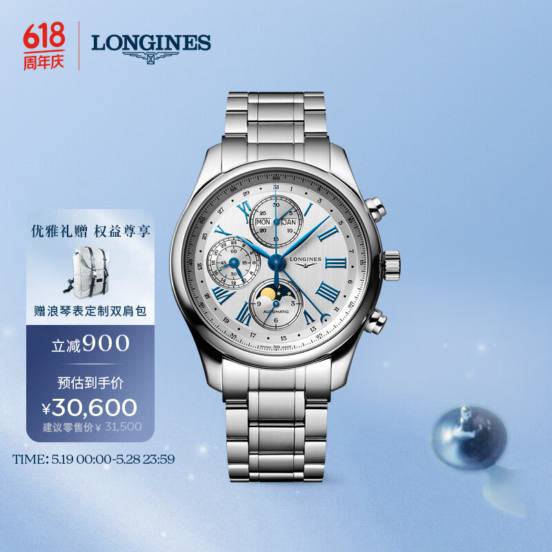 浪琴(LONGINES)瑞士手表 名匠系列 月相机械钢带男表 L27734716价格:30600.00元!