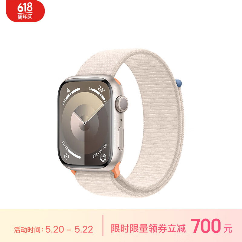Apple/苹果 Watch Series 9 智能手表GPS款45毫米星光色铝金属表壳 星光色回环式运动表带 MR983CH/A价格:3199.00元!