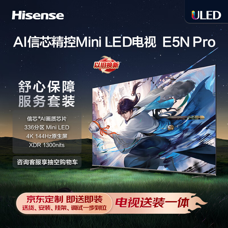 海信电视65E5N Pro 65英寸【包安装版】 ULED Mini LED 336分区 1300nits 游戏智慧屏 液晶平板电视机价格:4838.00元!