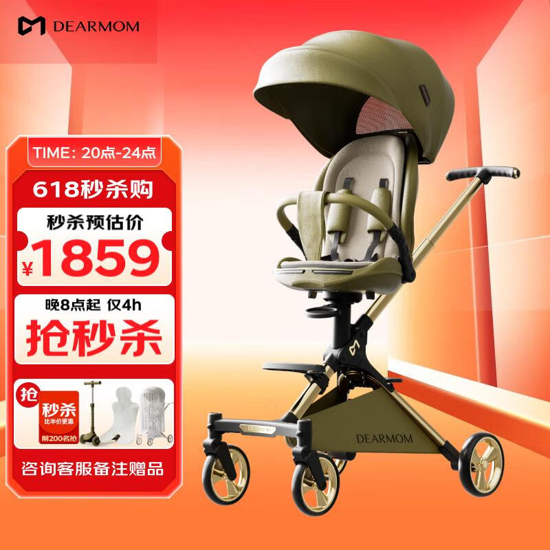 DearMom 婴儿推车大白车高景观溜娃神器宝宝轻便双向可坐躺遛娃手推车 绿价格:3698.00元!