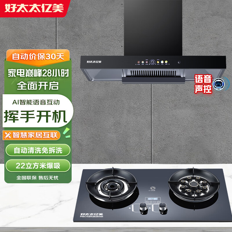 好太太亿美油烟机燃气灶套装22立方大吸力欧式顶吸式烟机厨房5.2KW液化气烟灶两件套CXW-238-809DT13+JZY-B6Y价格:999.00元!