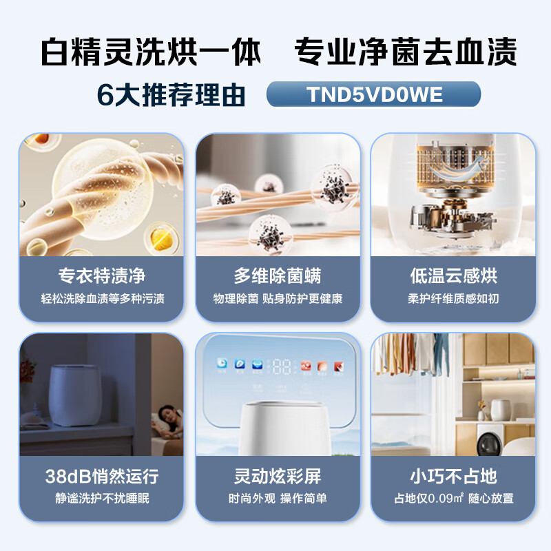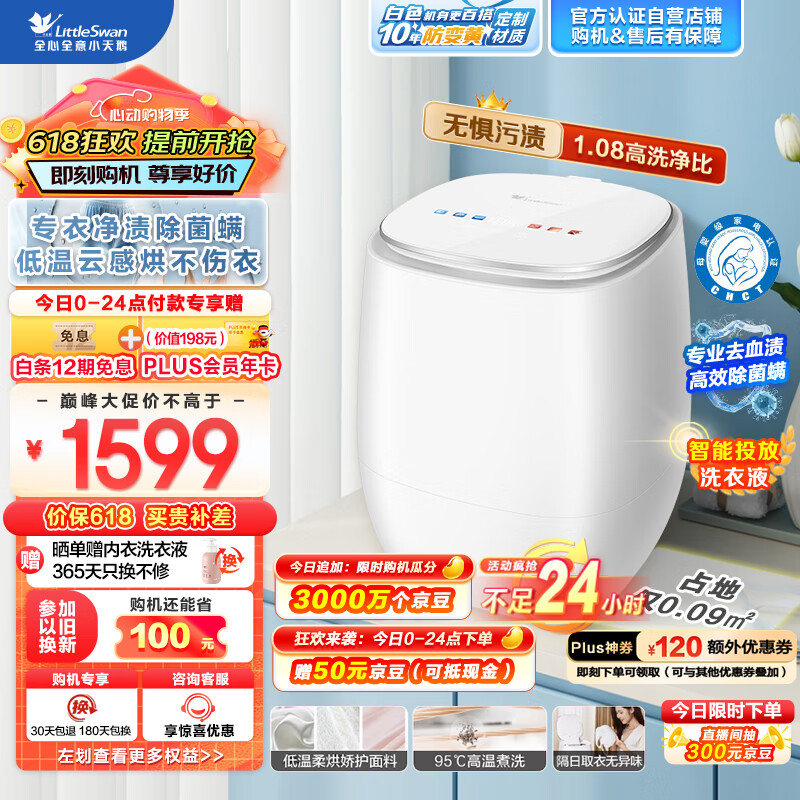 小天鹅(LittleSwan)0.5KG迷你洗衣机全自动 白精灵 去血渍洗烘一体 内衣裤洗衣机 高温煮洗除菌螨 精准智投 TND5VD0WE价格:1599.00元!