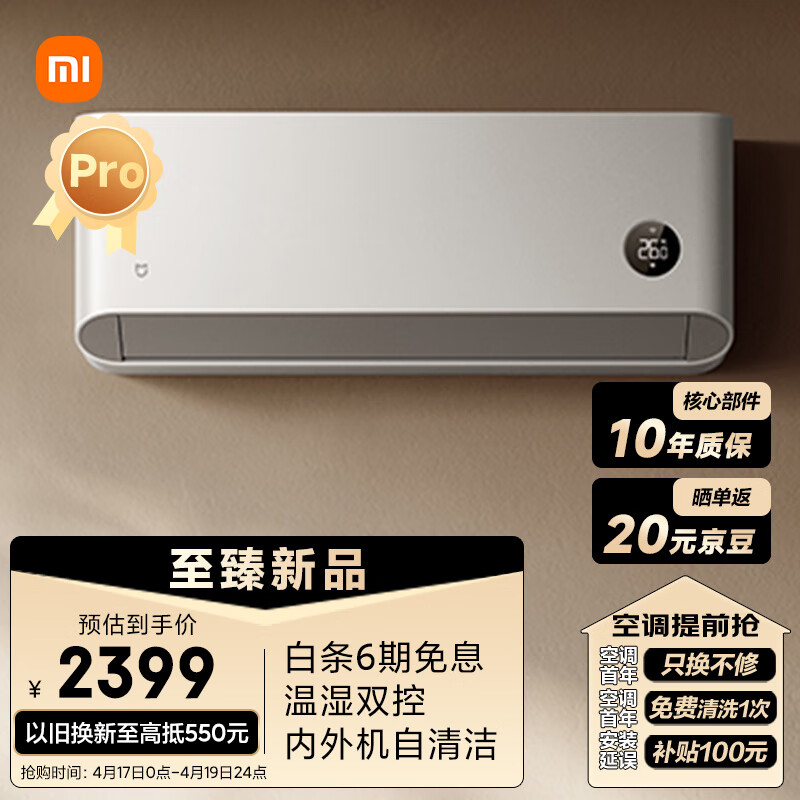 小米1.5匹 巨省电pro 超一级能效 变频冷暖 智能自清洁 壁挂式卧室空调挂机 KFR-35GW/V1A1 以旧换新价格:2399.00元!