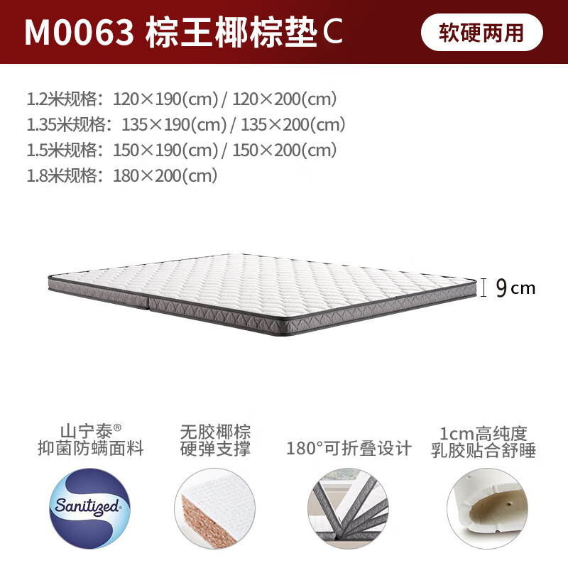 顾家家居(KUKA)可折叠榻榻米椰棕乳胶软硬两用9cm薄垫M0063C 1.35*1.9m价格:999.00元!