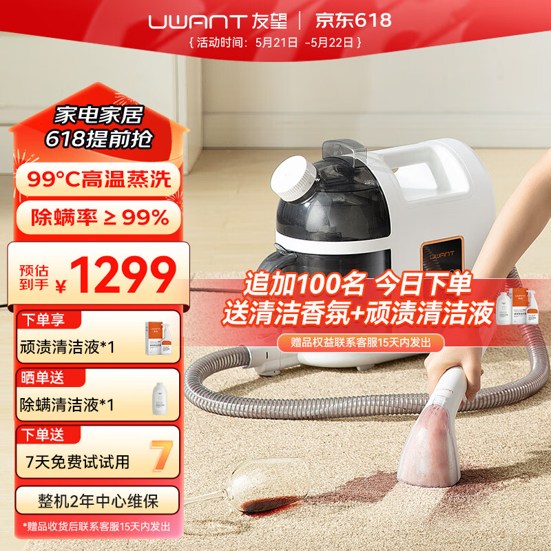 uwant友望蒸汽布艺沙发清洗机 家用多功能清洗 沙发地毯床垫宠物垫窗帘汽车清洁神器B200价格:1299.00元!