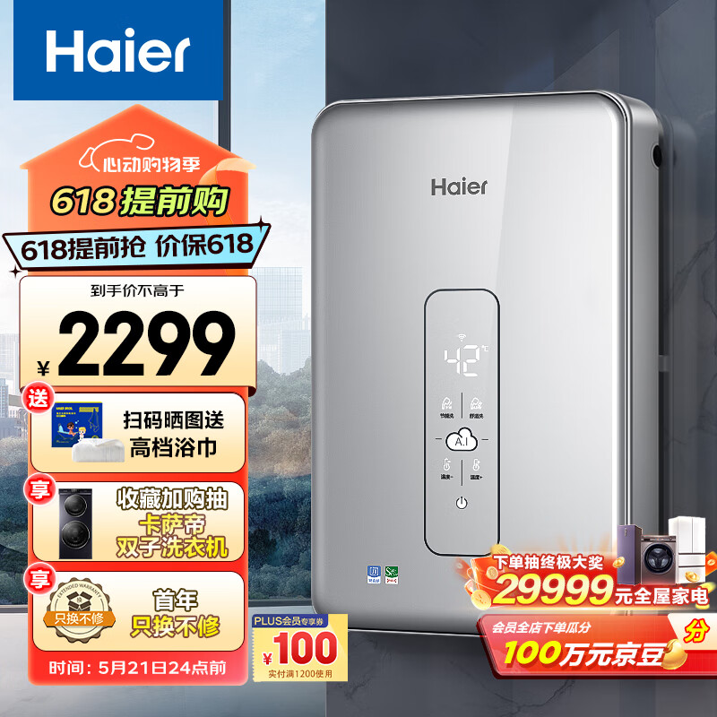 海尔(Haier)电热水器即热式即开即热水电双变频恒温AI智能家用速热专利防电墙赠增压花洒DSH-85V3(U1)价格:2499.00元!