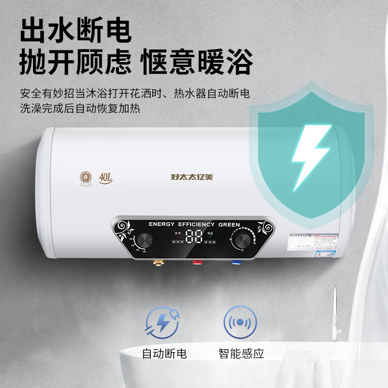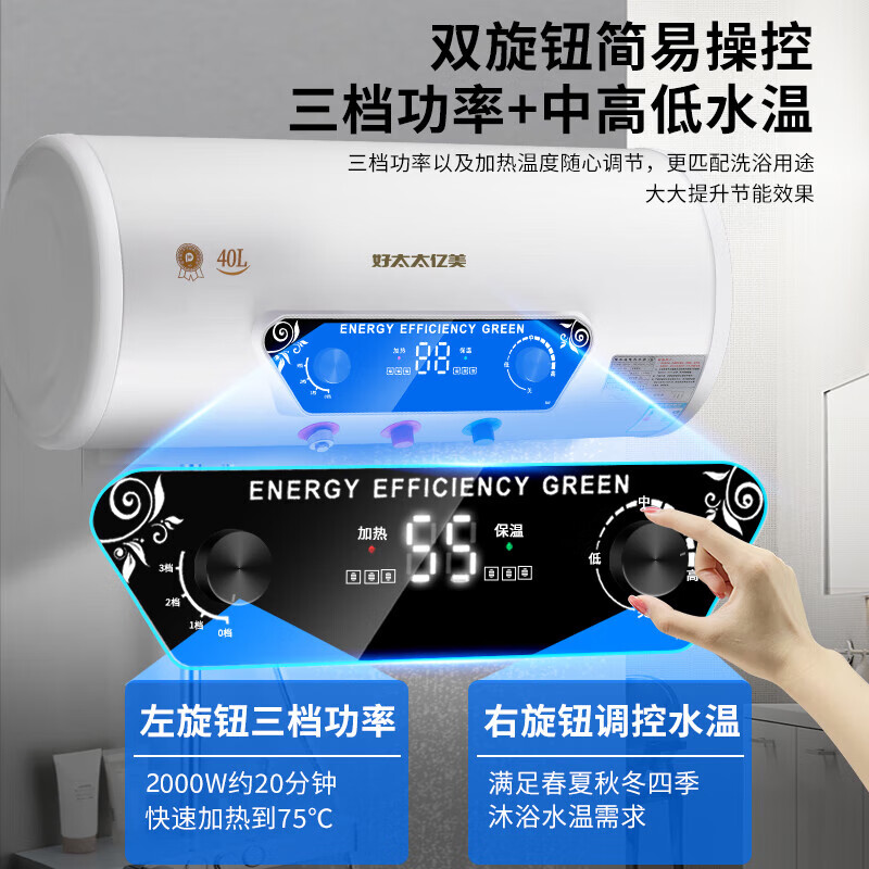 好太太亿美热水器电热水器速热圆桶40升一级能效2000W卫生间洗澡家用出租房小型热水器DSZF-40A 上门安装价格:288.00元!
