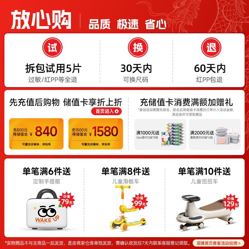 BBG蓝芯羽柔奢护纸尿裤S码80片(3-6kg)婴儿尿不湿鲸吸瞬干不易漏价格:198.00元!