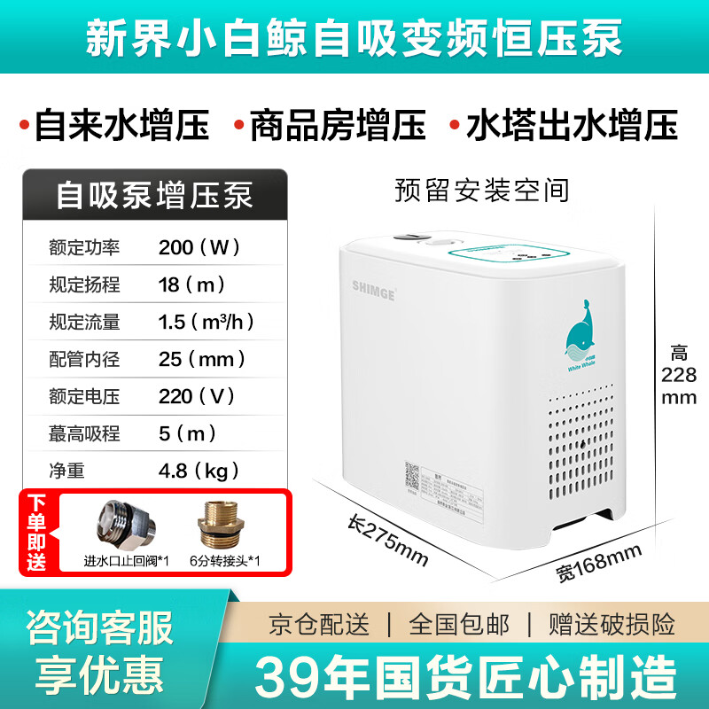 新界小白鲸增压泵家用全自动变频泵自来水管道加压泵自吸恒压泵 自吸变频增压泵价格:1059.00元!