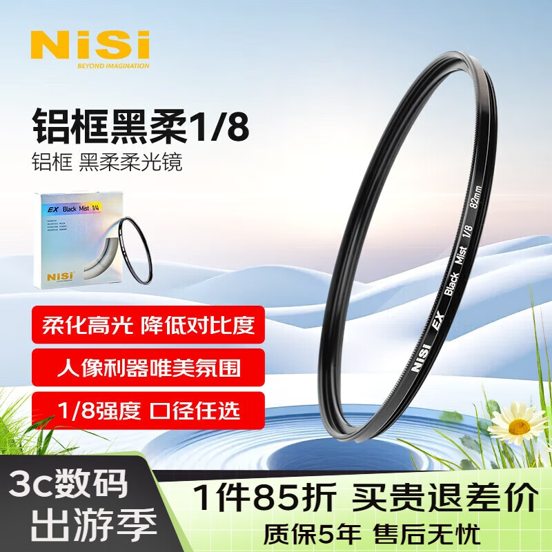 耐司(NiSi)1/8黑柔滤镜 43mm ex铝框柔光镜八分之一柔化镜柔焦镜朦胧镜人像拍摄美颜镜微单相机单反价格:125.00元!