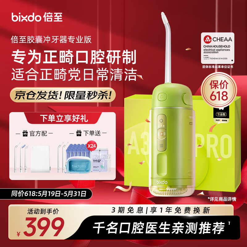 倍至(bixdo)冲牙器胶囊三代洗牙器水牙线美牙仪预防牙结石正畸适用伸缩便携儿童洁牙器情人节送男女朋友礼物价格:478.00元!