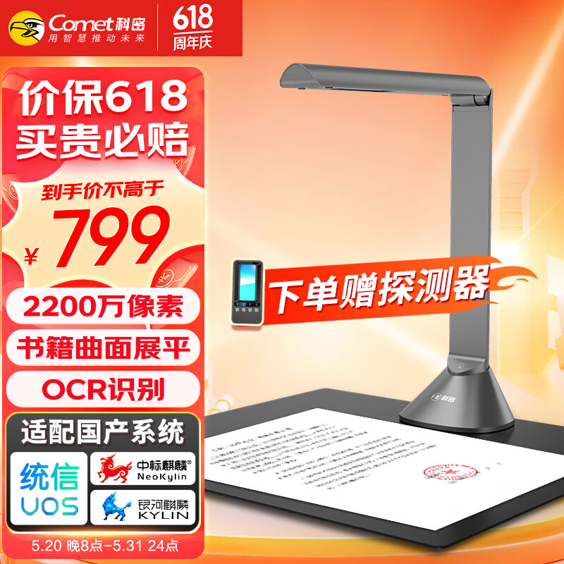 科密(comet) GP1600AF 高拍仪 2200万像素 可在线升级A3A4扫描仪 PDF合成 OCR识别 书籍展平 国产系统价格:899.00元!