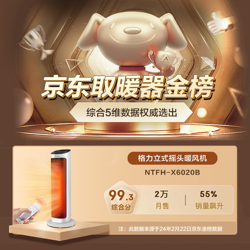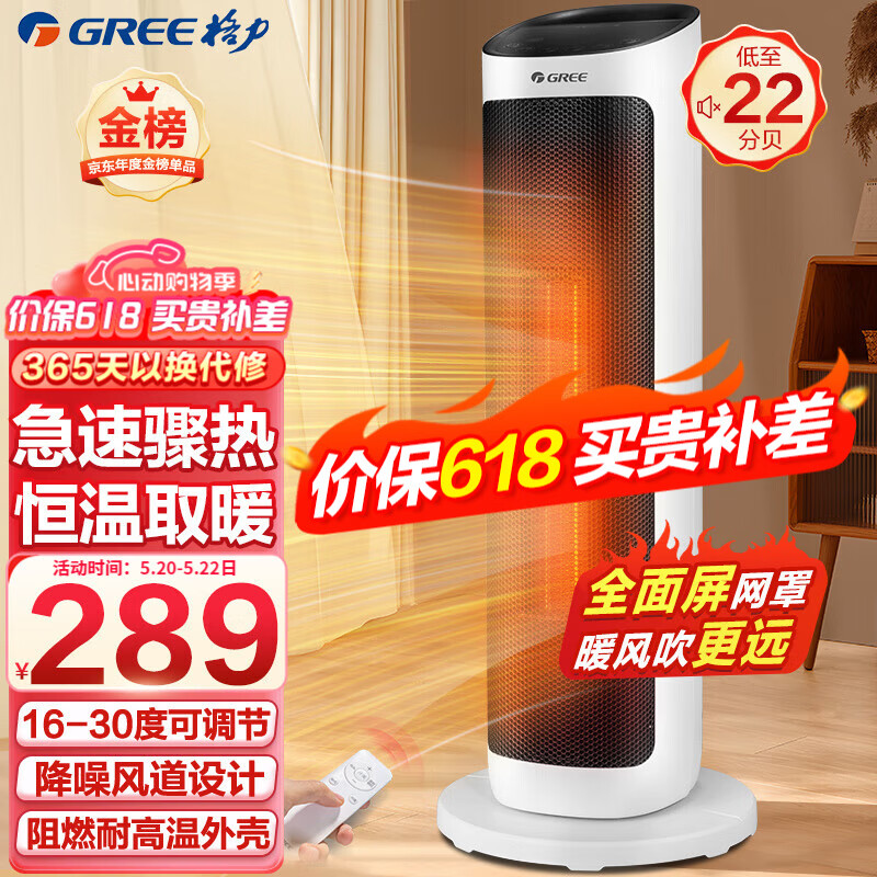 格力(GREE)取暖器遥控电暖器数码显示屏电暖气家用塔式立式摇头暖风机 【金榜单品】遥控款珊瑚玉+黑NTFH-X6020B价格:289.00元!