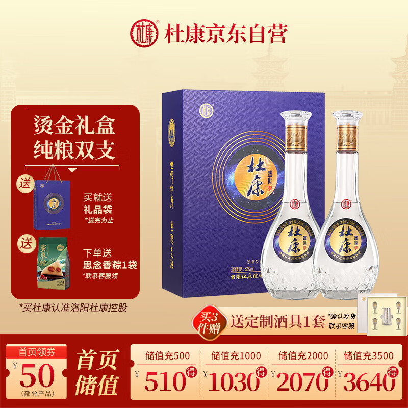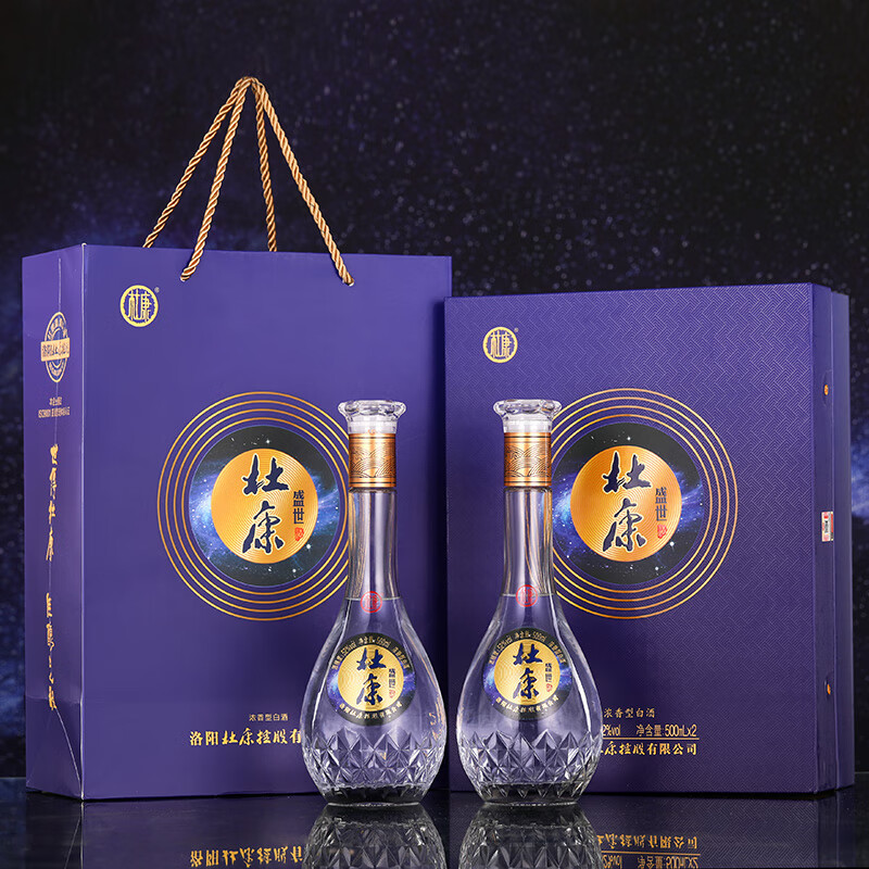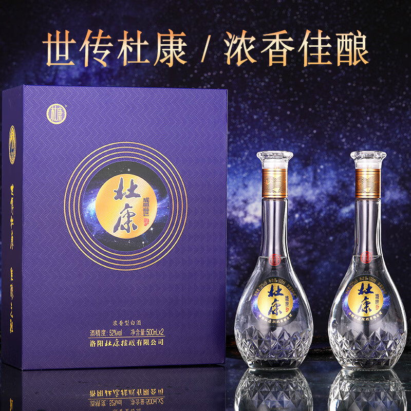 杜康盛世浓香型高度白酒52度500ml*2瓶双支礼盒【自饮送礼河南特产】价格:189.00元!
