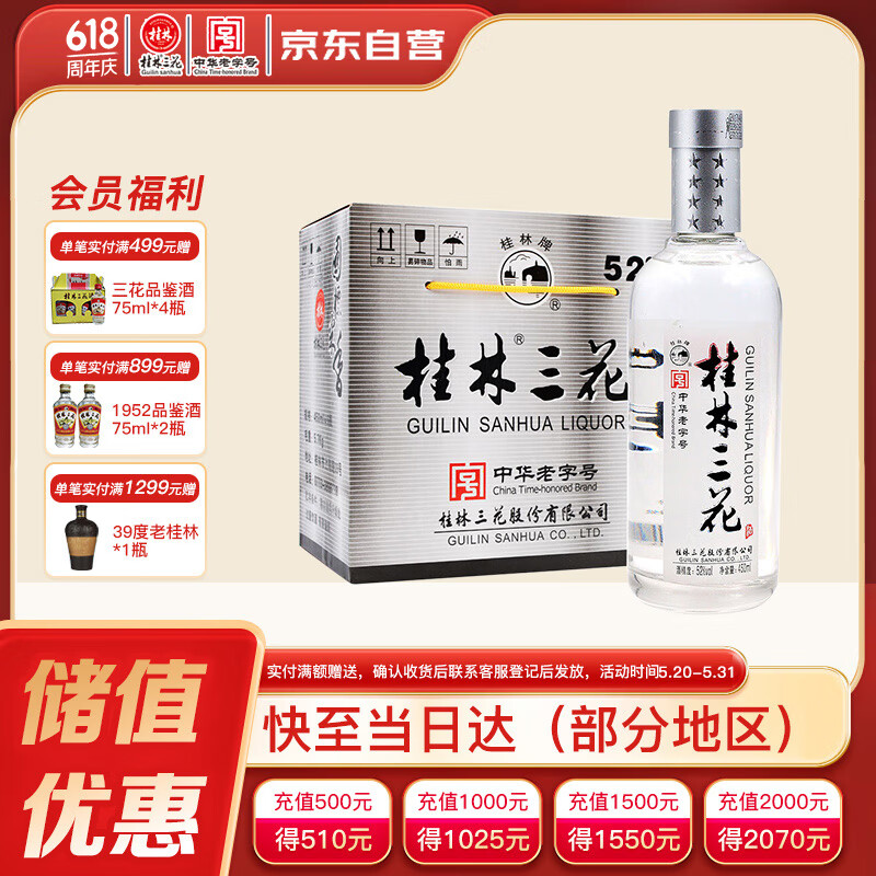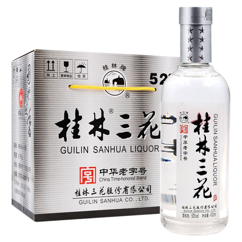 桂林三花酒 国标米香酒 52度 450ml*6瓶 整箱装 米香型白酒价格参考: