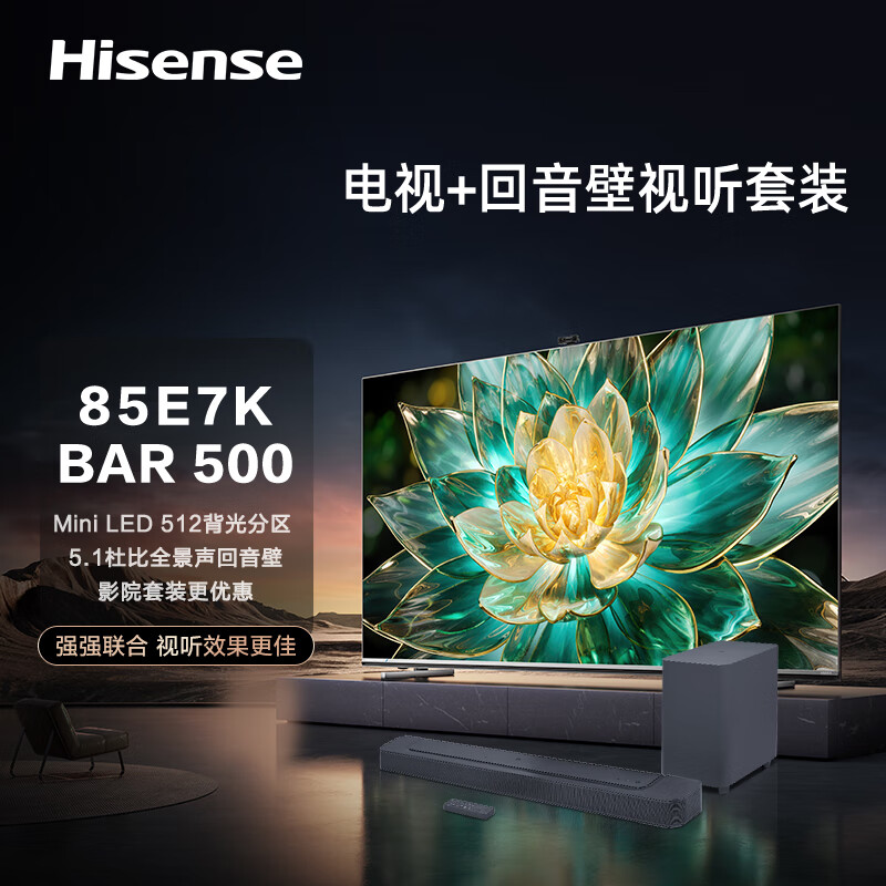海信电视85E7K+ Bar500沉浸追剧套装 85英寸 ULED X Mini LED 512分区 AI摄像头超感知智能平板电视机价格:13598.00元!