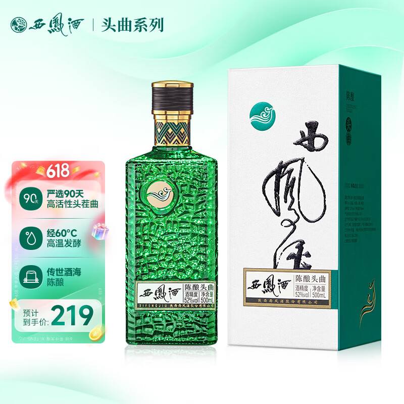 西凤酒 陈酿头曲 52度 500ml*1瓶 单瓶装 凤香型白酒价格:219.00元!
