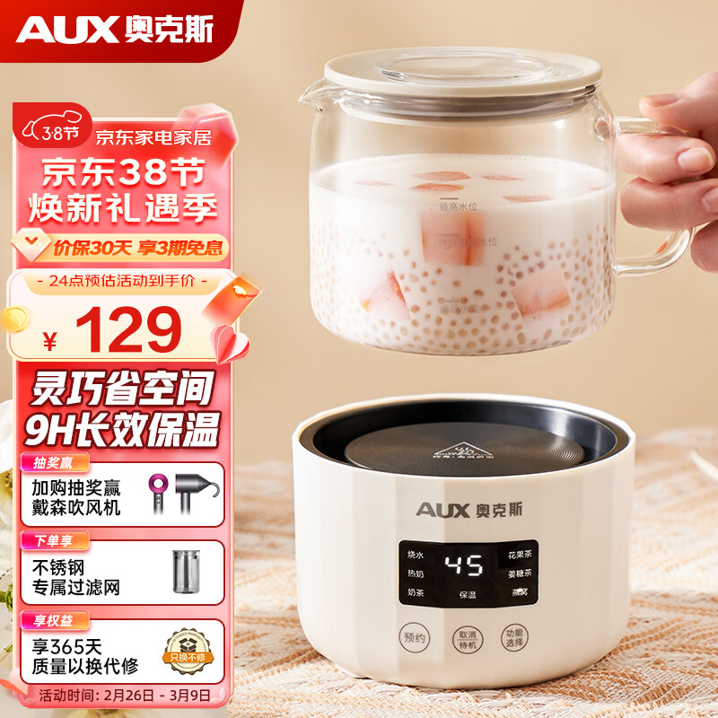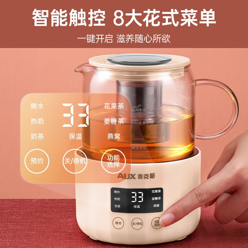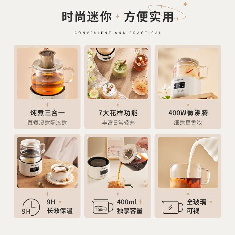 奥克斯(AUX) 迷你养生壶养生杯 电炖杯电热杯煮花茶壶烧水壶办公室杯子 0.4L全玻璃杯体煮茶器 HX-S0512 米白色 0.4L价格:159.00元!
