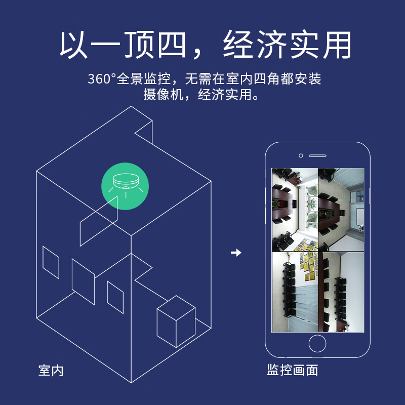TP-link 500万图像传感器鱼眼无线监控摄像头 360度全景超清红外夜视Wi-Fi手机远程智能网络摄像机TL-IPC55AE价格:359.00元!