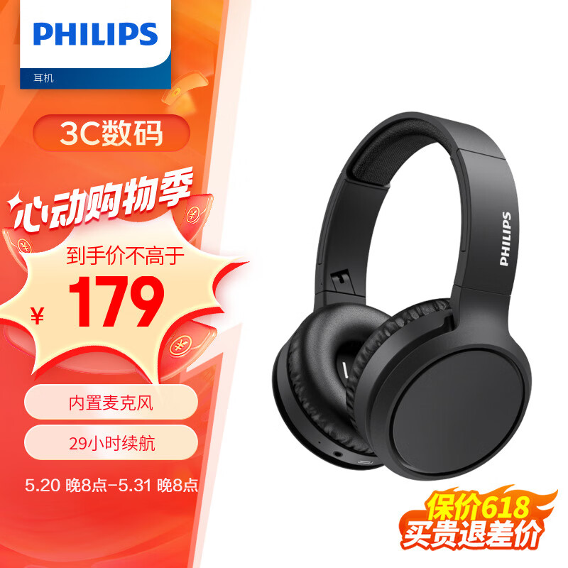 飞利浦(PHILIPS)头戴式耳机无线蓝牙耳机清晰通话耳麦游戏音乐运动苹果华为小米安卓手机通用TAH5205黑价格:179.00元!