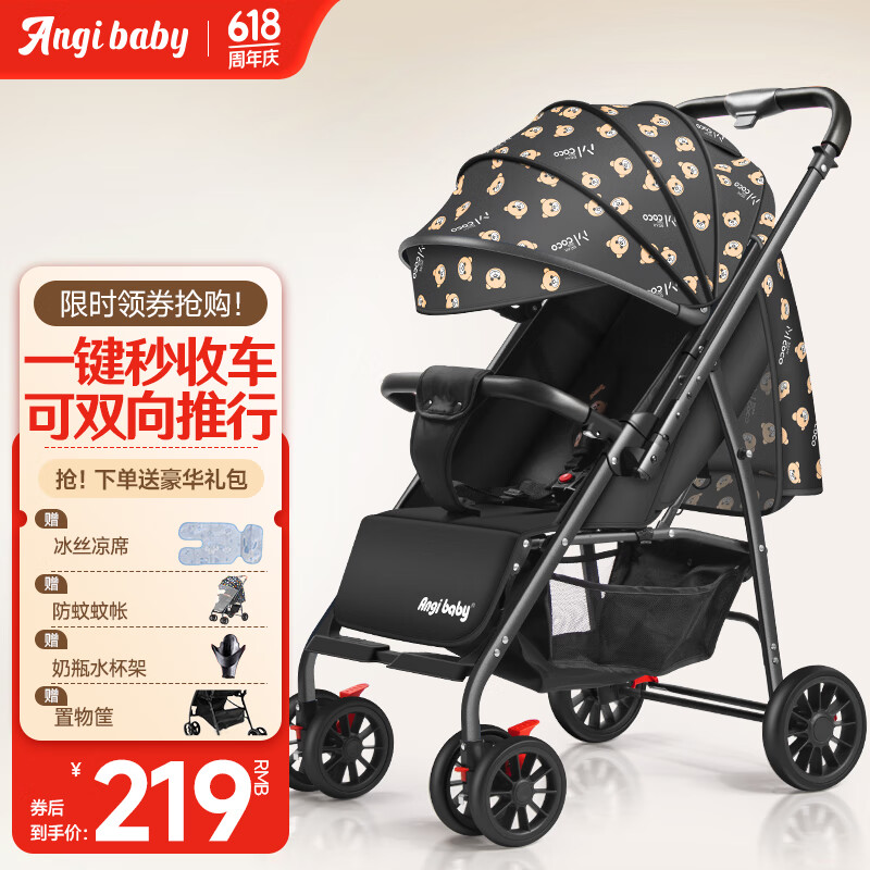 ANGI BABY婴儿推车可坐可躺可折叠减震婴儿车双向伞车宝宝bb小孩手推车童车价格:249.00元!