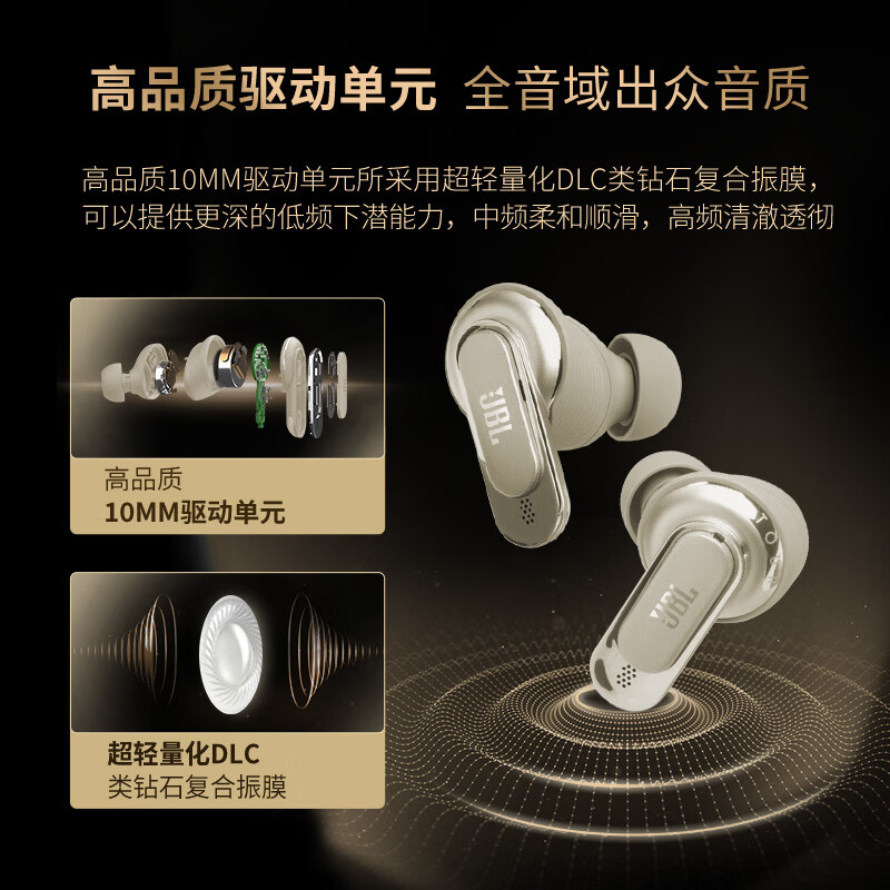 JBL TOUR PRO2真无线入耳式主动降噪蓝牙耳机 跑步骑行运动音乐游戏耳机 送男/女友礼物 香槟金价格:1499.00元!
