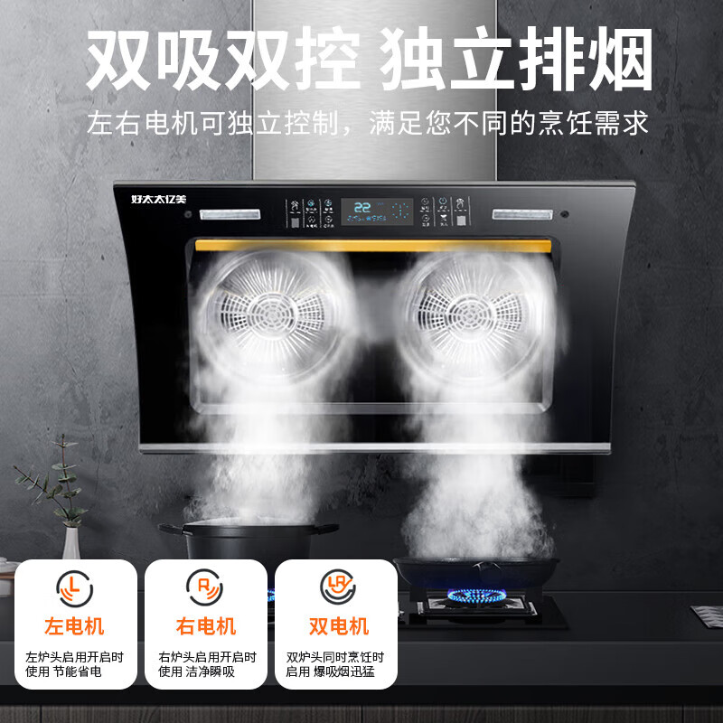 好太太亿美油烟机家用侧吸式抽油烟机双电机830宽八键清洗 22立方大吸力CXW-238-837A830K价格:459.00元!