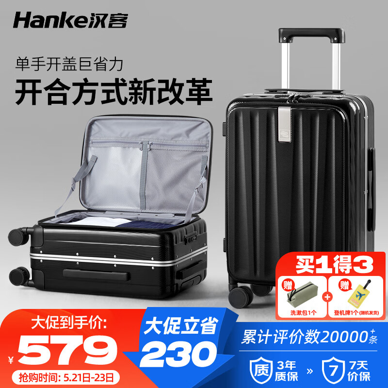 汉客行李箱男拉杆箱女旅行箱88升大容量26英寸墨玉黑镇店前侧开盖铝框价格:809.00元!