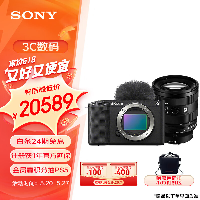 索尼(SONY)ZV-E1全画幅Vlog旗舰微单相机 创意滤镜 AI智能芯片 黑色+SEL2070G广角镜头套装 可升级至4K 120p价格:20998.00元!