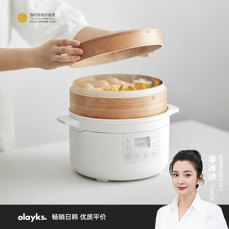 olayks电饭煲 电饭锅小型 蒸煮炖多功能一体家用2-3人 陶瓷釉内胆 柴火饭智能煮饭锅 2L 竹木蒸笼+炖盅价格:439.00元!