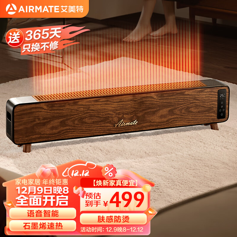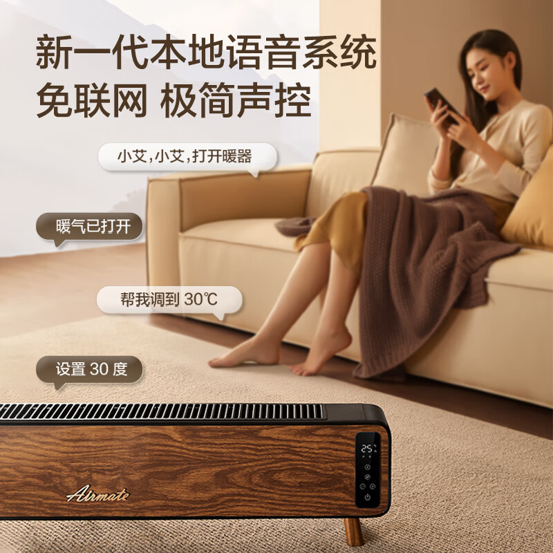 艾美特(AIRMATE)语音智能石墨烯踢脚线取暖器家用暖风机电暖器节能电暖气片复古木纹防水防烫移动地暖 HD22-R39价格:599.00元!