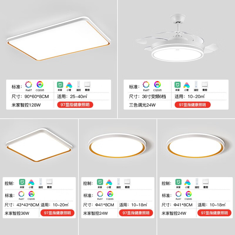奥克斯(AUX)吸顶灯具套餐三室两厅智能健康客厅灯现代简约卧室阳台灯 全屋健康护眼款+餐厅风扇3室2厅C价格:1110.00元!