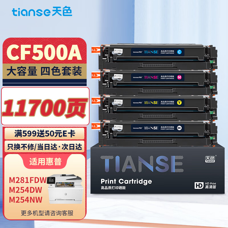 天色202a硒鼓适用惠普m281fdw硒鼓m254dw m254nw m281fdn m280nw打印机粉盒墨盒cf500a硒鼓黑彩色套装带芯片价格:299.00元!