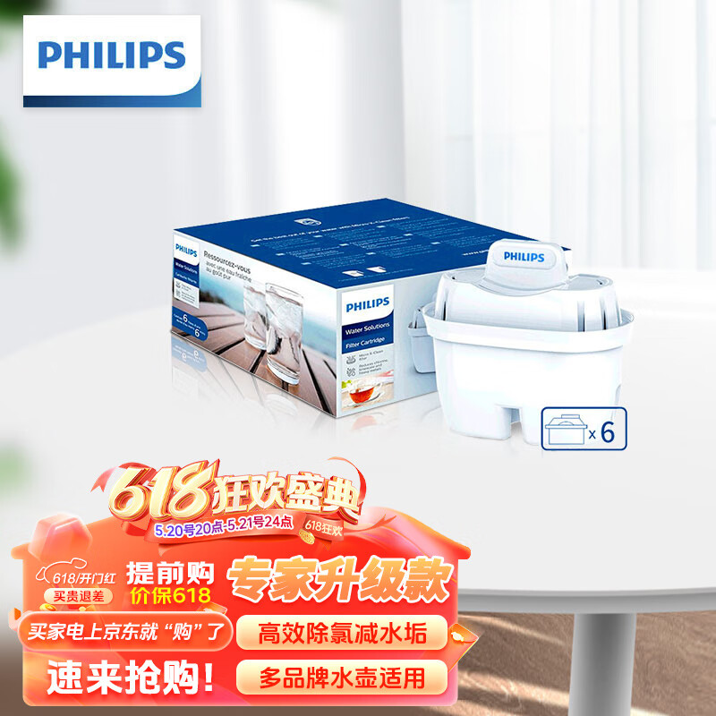 飞利浦(PHILIPS)家用净水壶滤芯 滤水壶净水器去除水垢专家版滤芯AWP210 6枚装价格:129.00元!