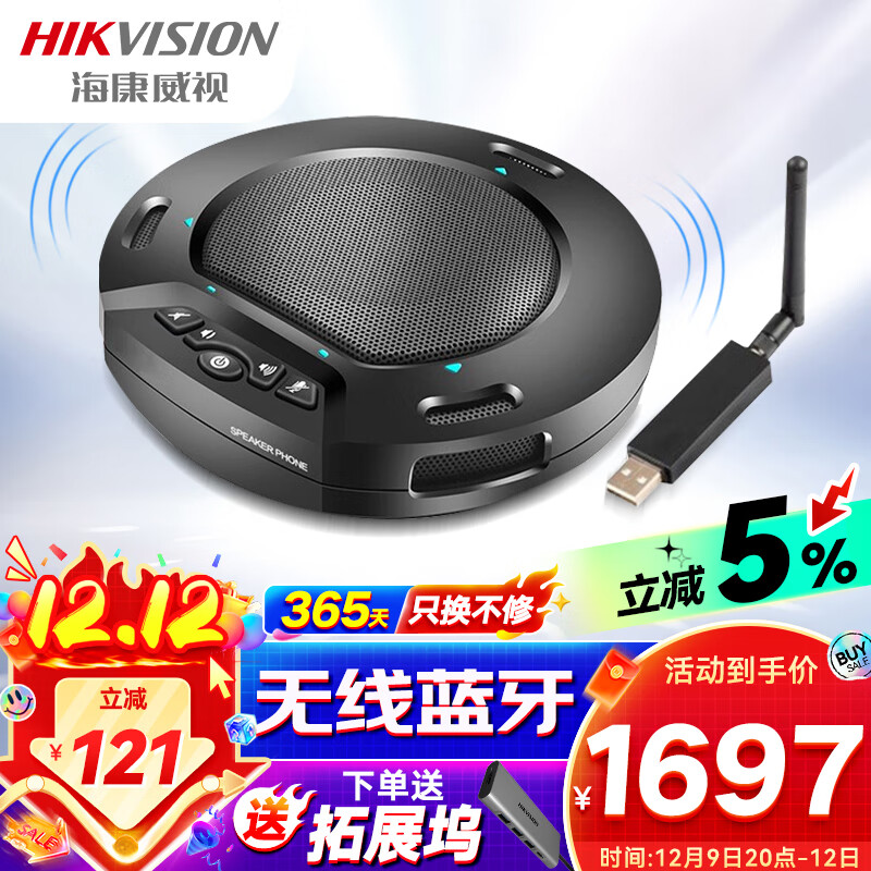 海康威视全向麦克风视频会议USB免驱无线6米拾音360°收音桌面型扬声器适用40~60㎡价格:1727.00元!