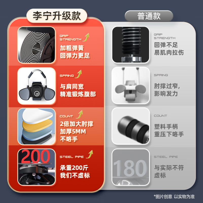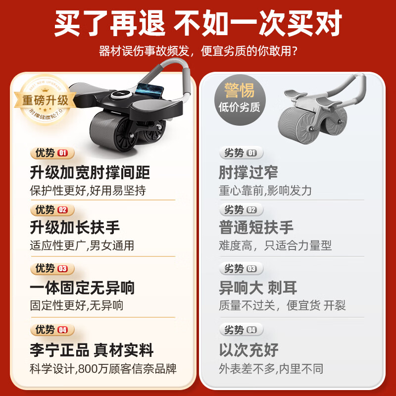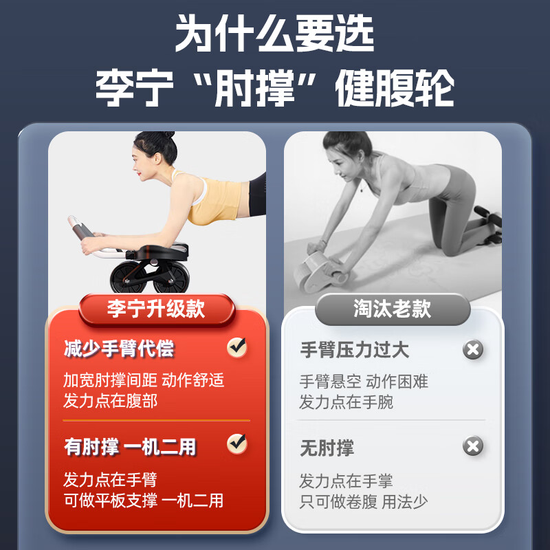 李宁(LI-NING)健腹轮自动回弹家用肘撑腹肌轮男女卷练腹肌两用平板支撑健身器材价格:109.00元!