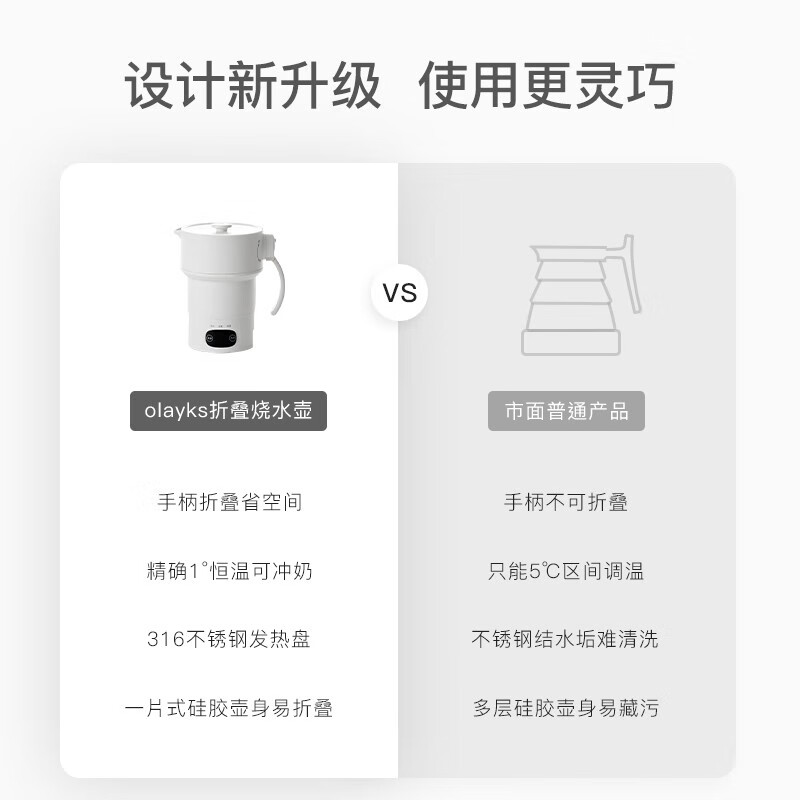 欧莱克(olayks)便携式烧水壶折叠电热水壶烧水杯家用0.6L折叠水壶烧水旅行电水壶宿舍小型恒温水壶冲奶保温防干烧 出差旅行-【升级316底盘】 0.6L价格:129.00元!