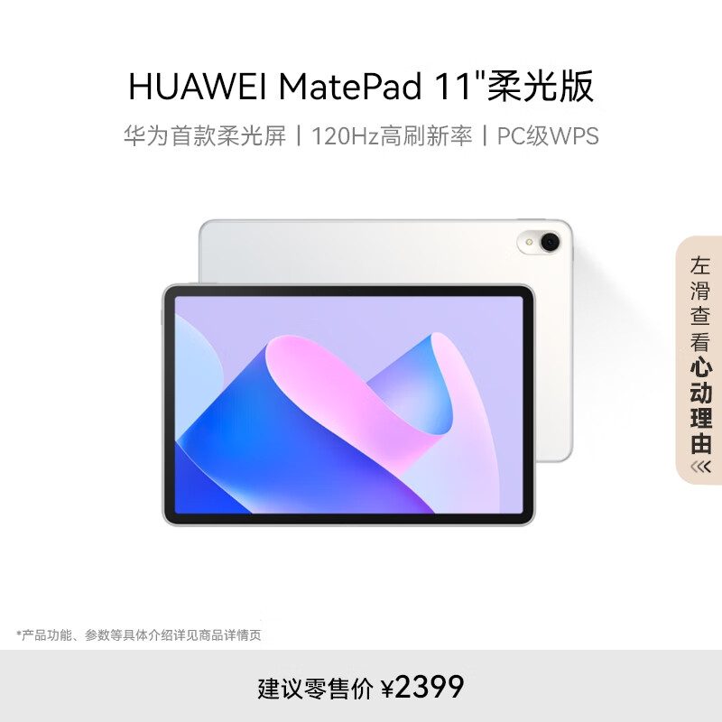 HUAWEI MatePad 11英寸2023款柔光版华为平板电脑120Hz高刷2.5K护眼屏娱乐学习 8+128GB WIFI 晶钻白价格:2299.00元!