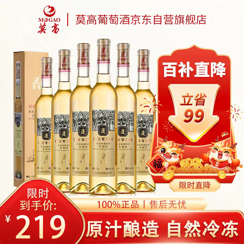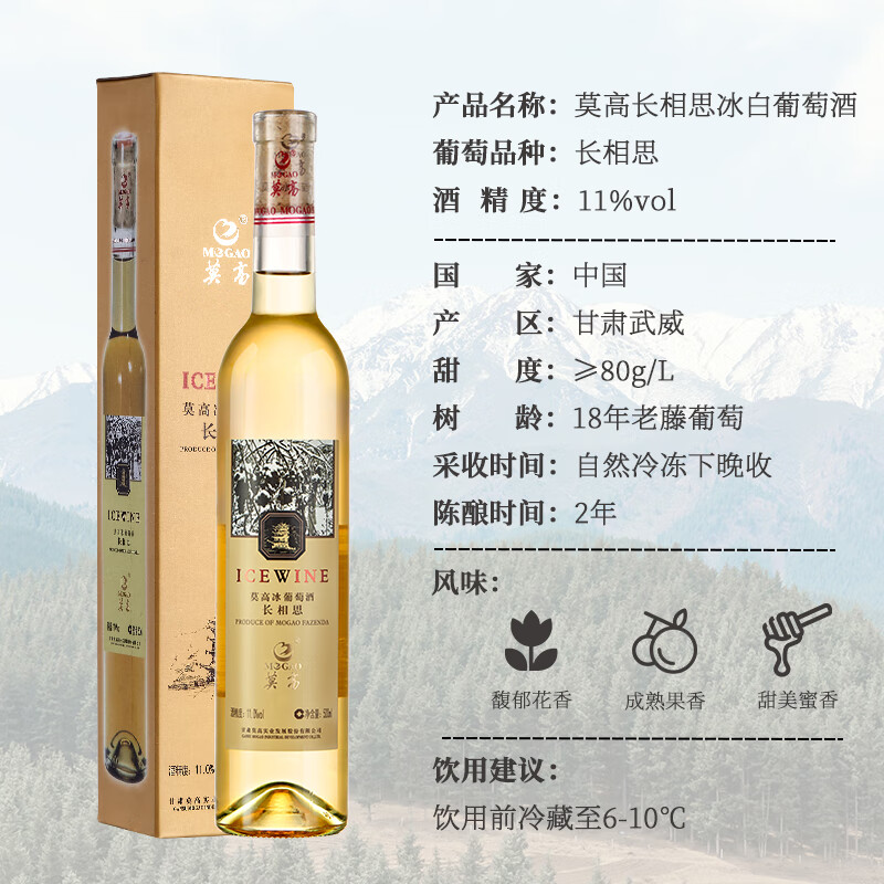 莫高红酒葡萄酒 冰白葡萄酒长相思果酒 500ml*6整箱装送礼价格:219.00元!