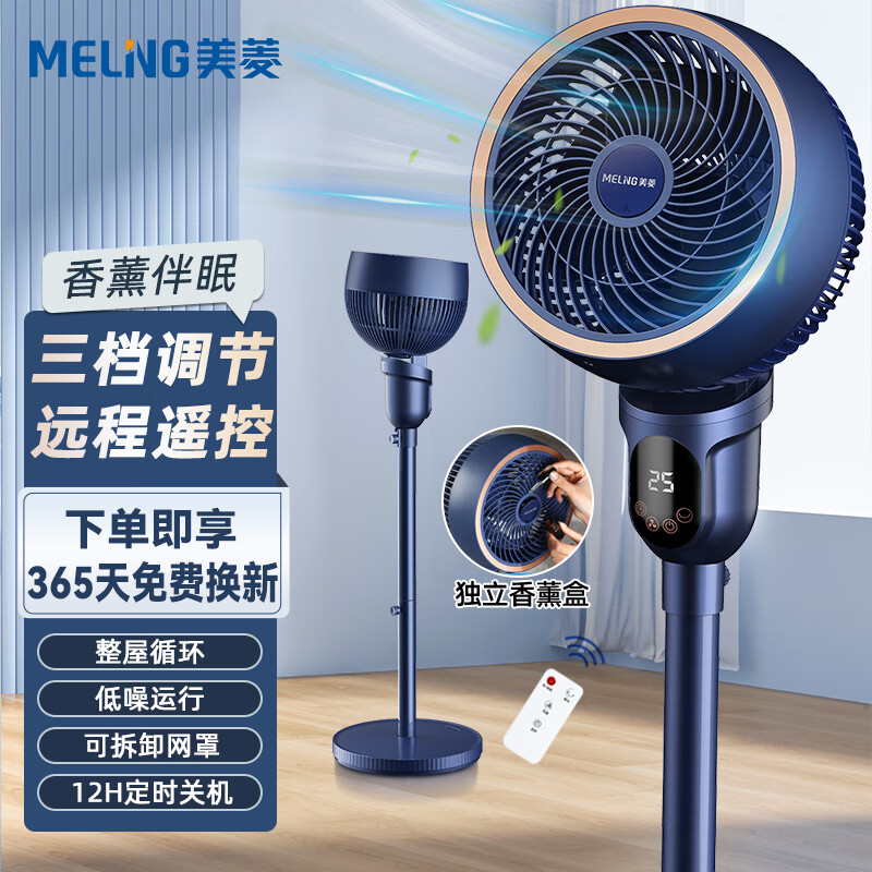 美菱MELNG 空气循环扇家用/卧室遥控电风扇/落地扇轻音低噪循环对流风扇MPF-DG2691升级加高遥控款价格:159.00元!